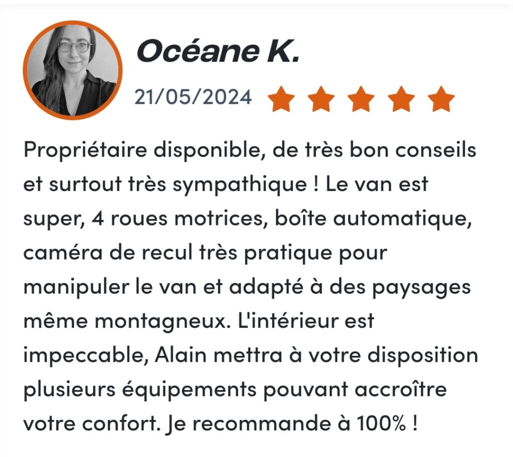 Pas de surprise de budget. Pas d'options superflues, l'offre se concentre sur la location du van avec package tout compris
